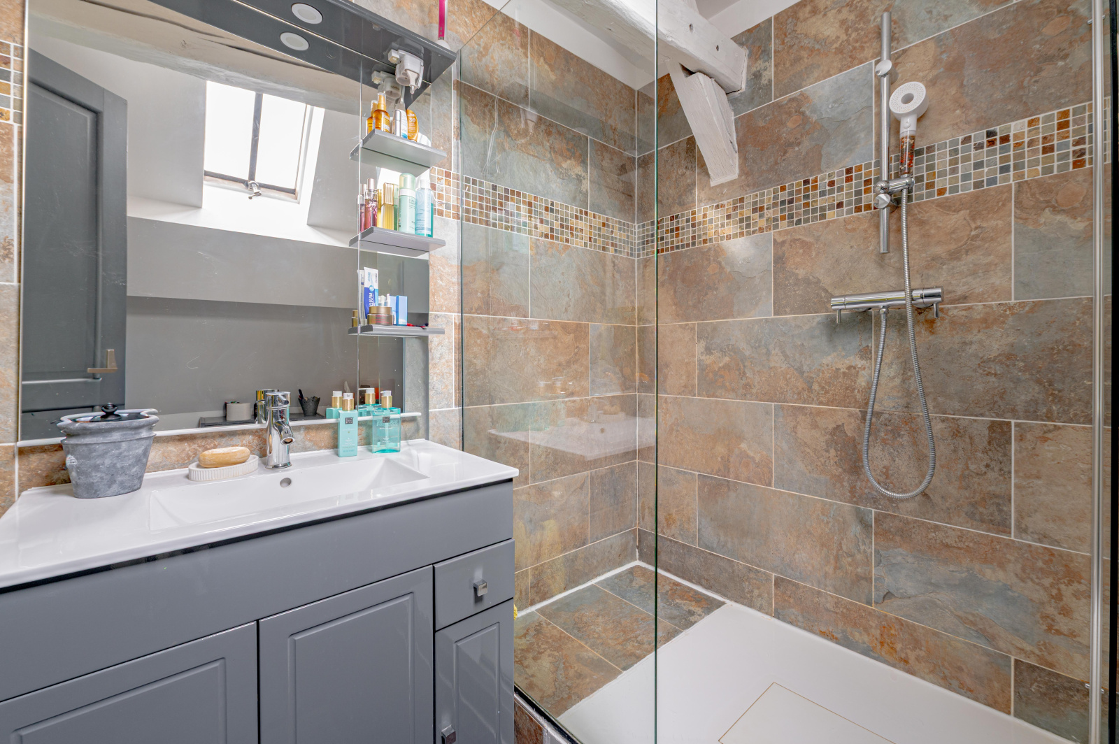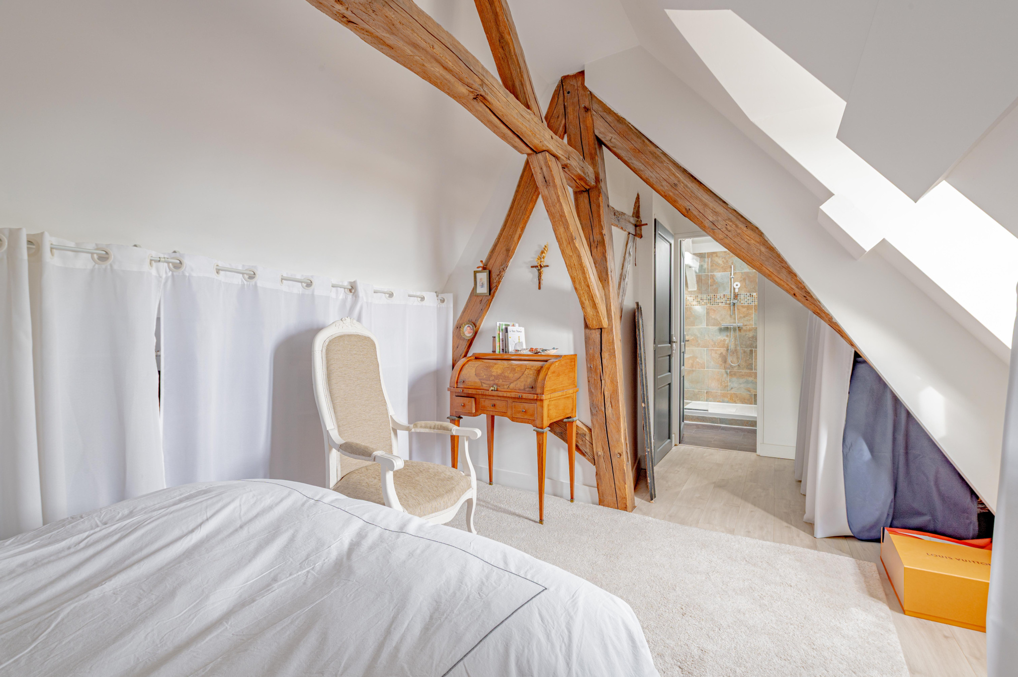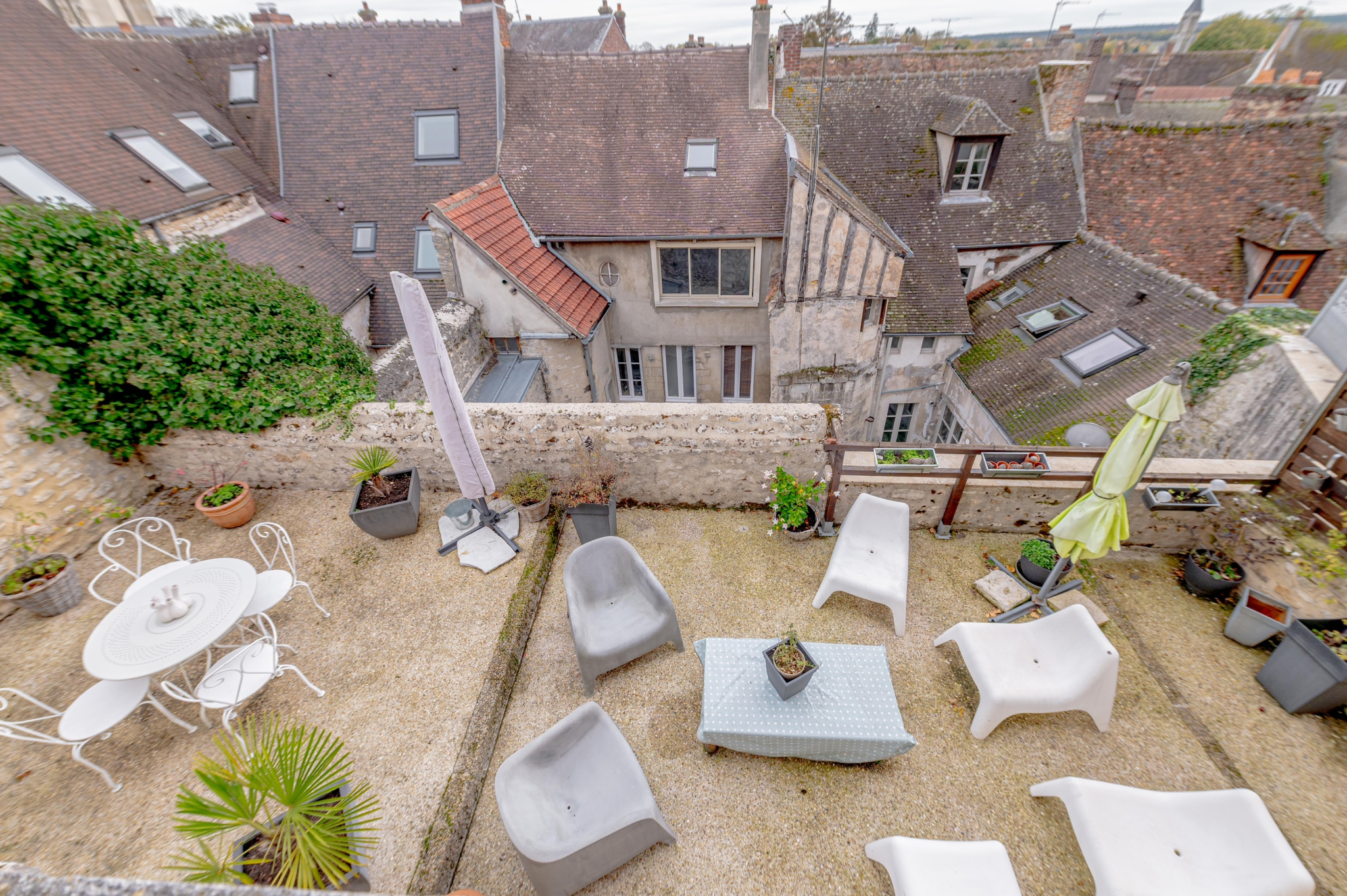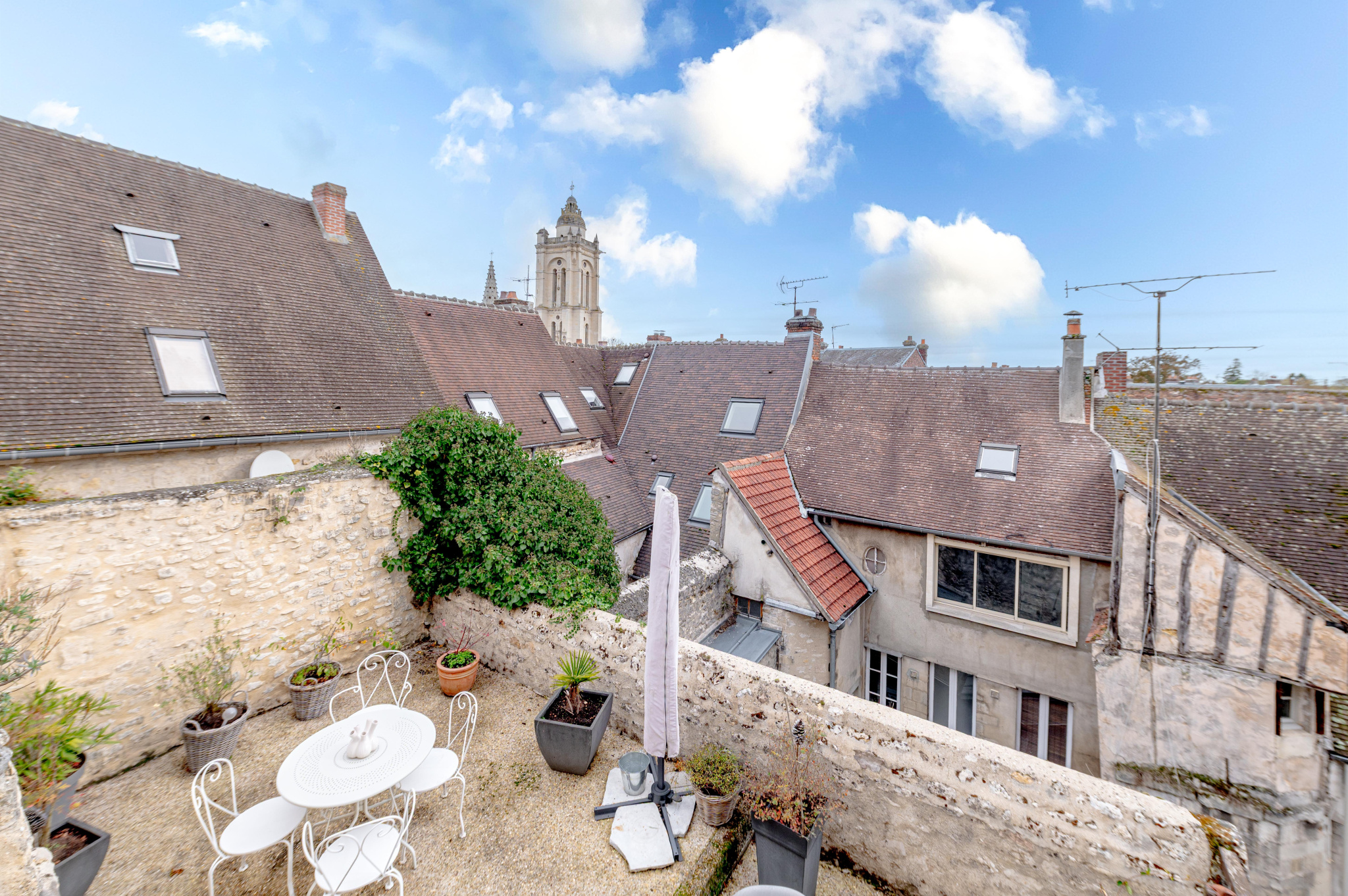 Depuis le salon, accédez à une magnifique terrasse d'environ 39 m², orientée Sud/Est, offrant une vue imprenable à 180° sur les toits de Senlis et l'église Saint-Pierre .