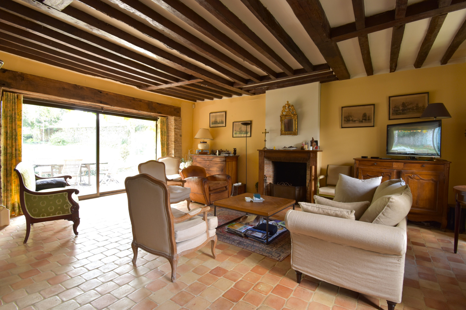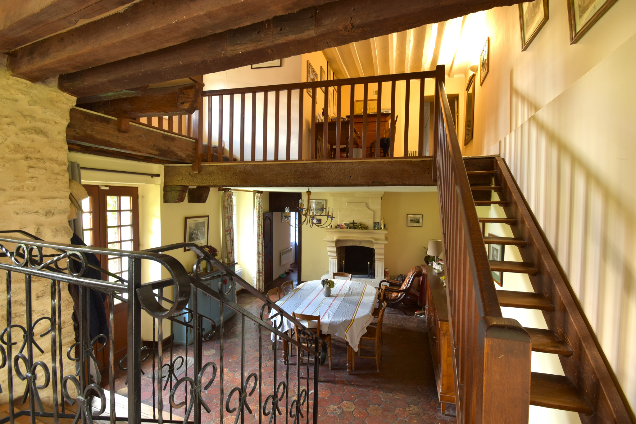 Au RDC: une salle de sejour de 50m2 avec cheminée ancienne fonctionelle, salle à manger le tout ouvert sur la terrasse et le jardin , une cuisne séparée et équipée donnant sur le jardin, une cave.