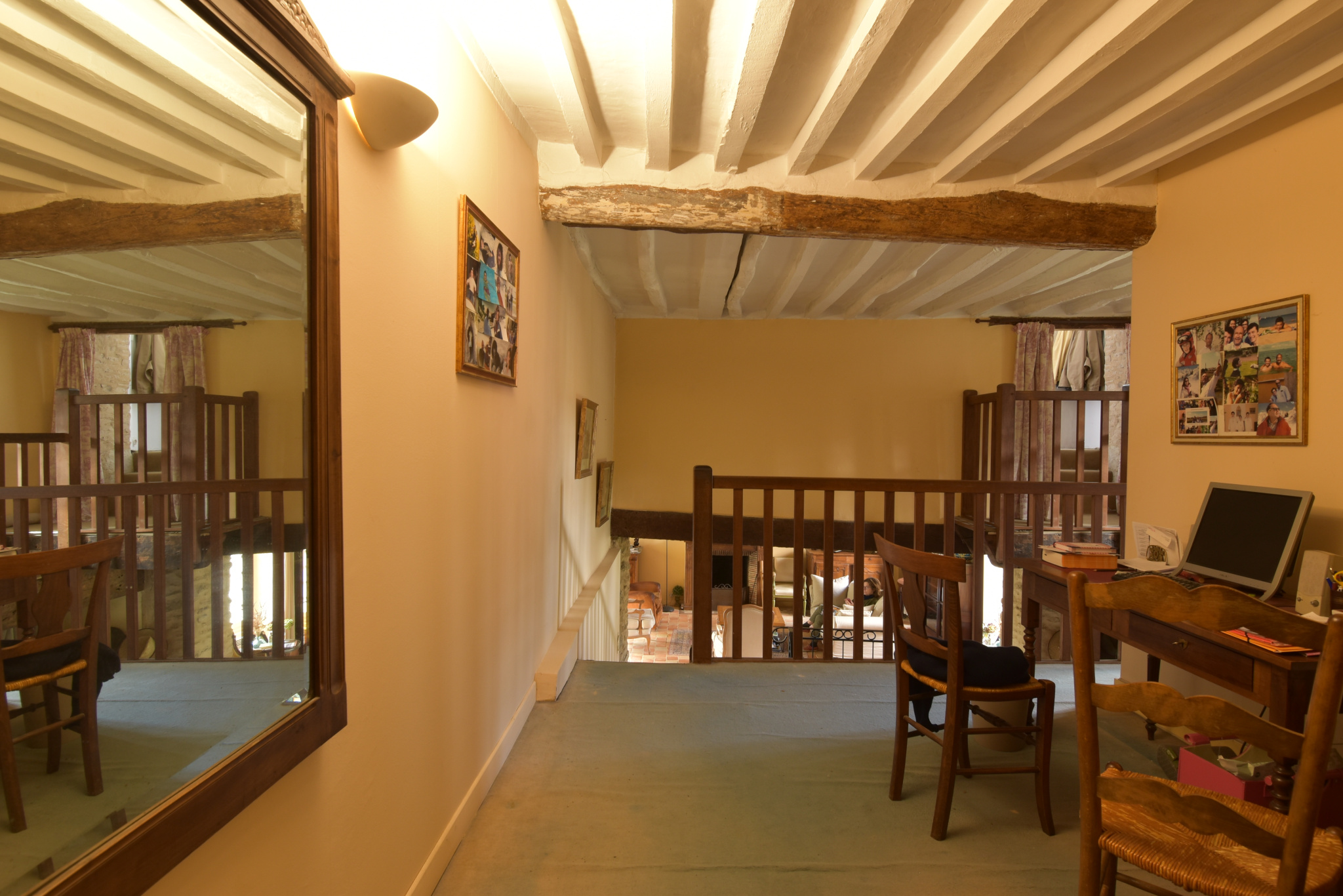 Une dépendance offrant un salon, palier avec mezzanine, bureau, SDE.