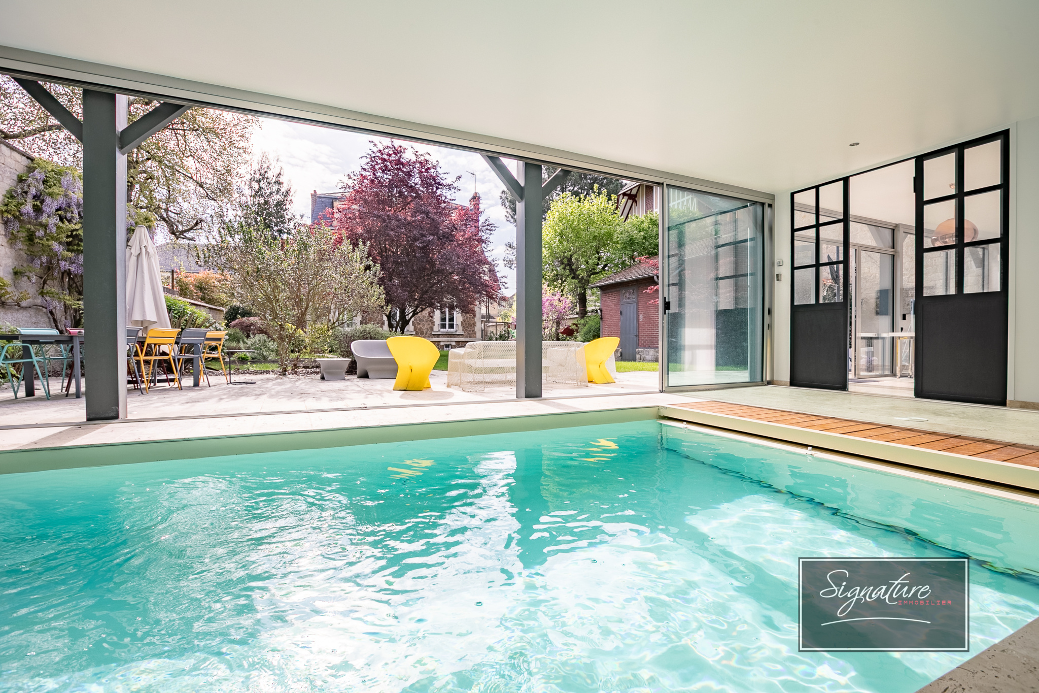 Cette superbe propriété entièrement rénovée vous séduira par son emplacement au coeur de Chantilly et ses prestations de qualités. La maison principale s'ouvre sur une entrée menant à un salon chaleureux avec cheminée ainsi qu' une grande cuisine dinatoire entièrement équipée offrant une atmosphère conviviale. Au premier étage, un palier offre trois chambres dont une avec dressing, une salle d'eau et un wc indépendant. Le second étage accueille deux grandes chambres supplémentaires avec salle de bains et wc. Un sous sol total aménagé complète ce bien avec salle de jeux, buanderie, chaufferie et espaces de rangement. La propriété dispose également d'une dépendance disposant de très beaux équipements: piscine couverte chauffée avec baies vitrées ouvrant sur la terrasse, salle de sport, vestiaire et wc. A l'étage, vous trouverez une agréable pièce de vie avec un poêle à granulés, une chambre, une cuisine équipée, une salle d'eau et un wc. A l'extérieur, vous profiterez d'un magnifique jardin arboré, entièrement clos avec terrasses, pool house, dépendance pour stocker et espace détente. Une cour permet le stationnement de trois véhicules. Idéalement située et offrant des prestations rares, cette propriété n'attend plus que vous. Contactez votre conseiller immobilier Emmanuelle Castela au 06 37 21 14 68 pour organiser une visite.