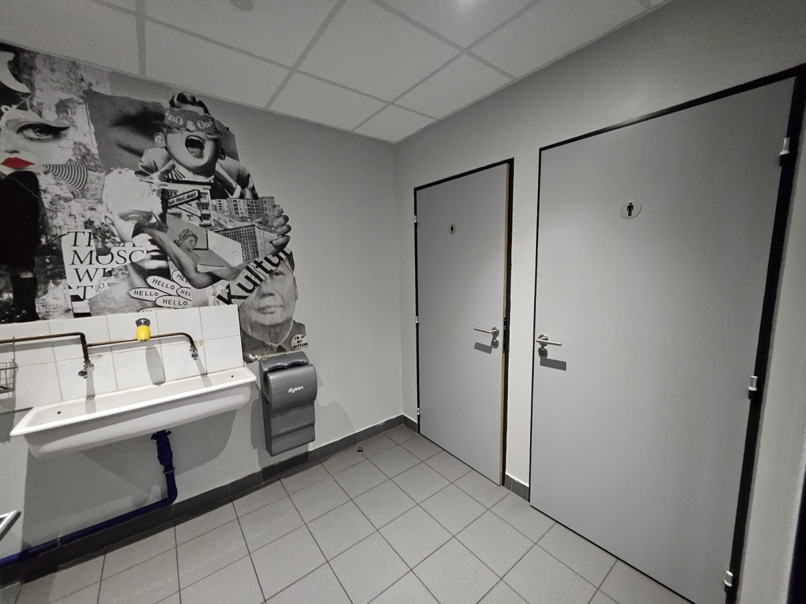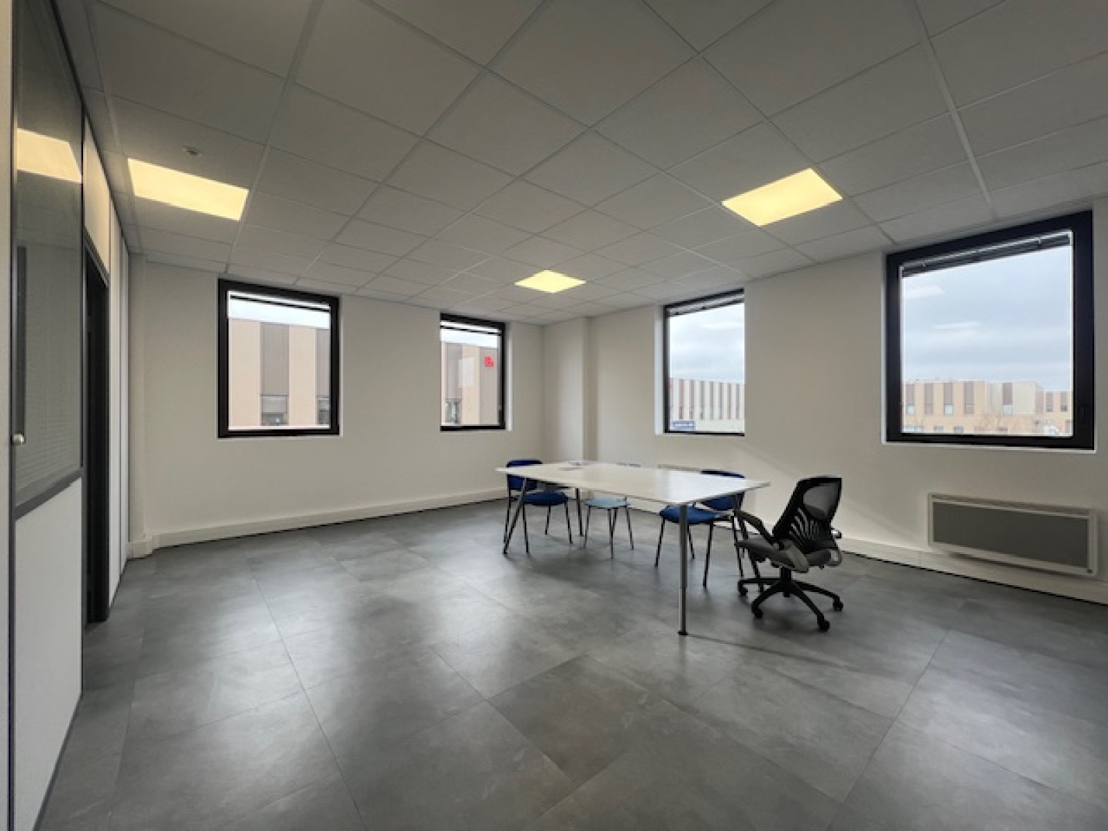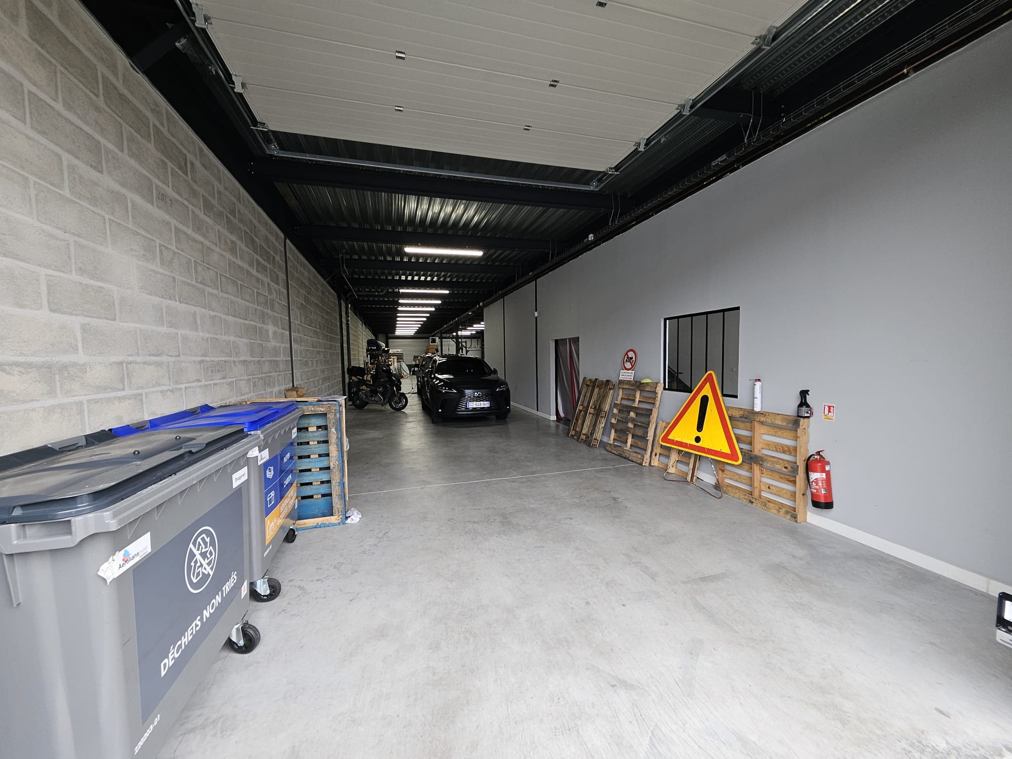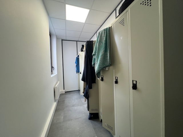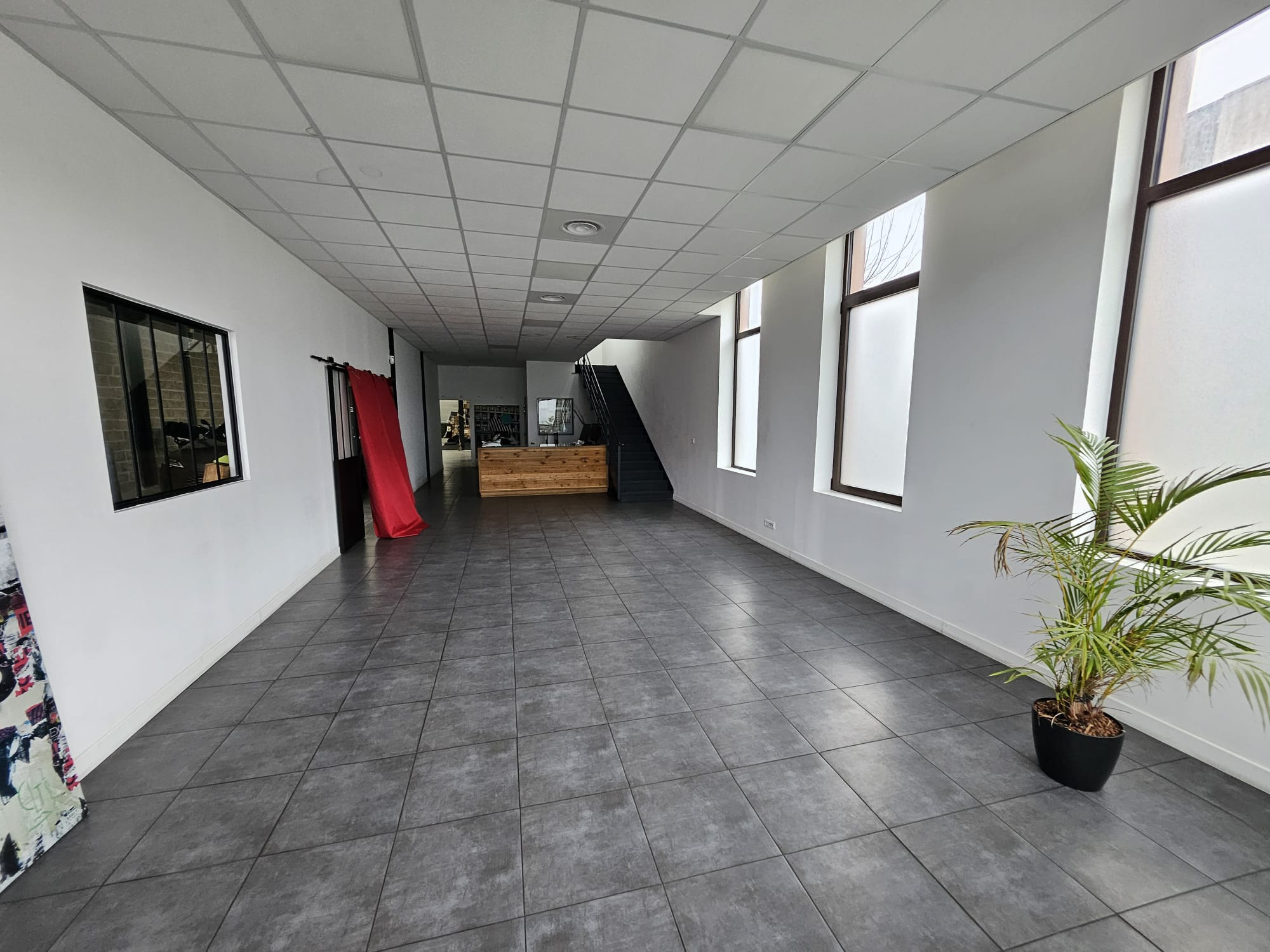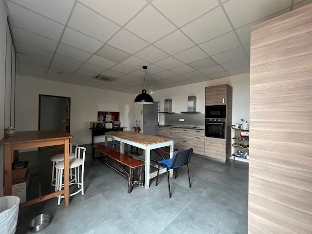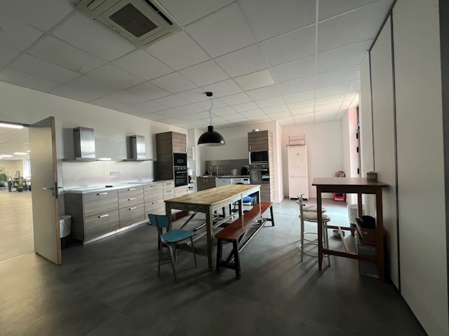 ETAGE : Grande salle , cuisine equipée séparée, WC, local technique, SDE, vestiaire , salle de reunion terrasse de 75m2 env: